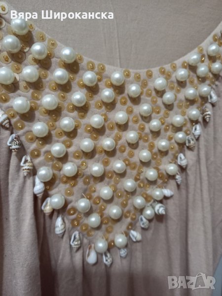 Разтегателна блуза с декорация от перли и малки рапанчета → Обява 40604584