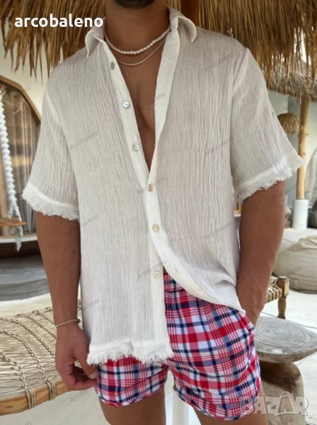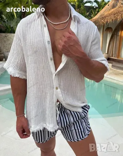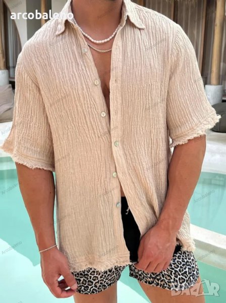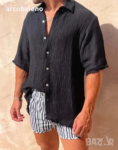 Мъжка памучна ежедневна широка риза с къс ръкав, 3цвята