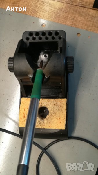 Продава се с всичко на снимките - стойка, гумен маншет за кабела, поялник с човка STTC-038. Дисплеят ѝ е сменен с нов, с много по добра яркост и контраст. Към нея като подарък давам и втори накрайник за по - висока работна температура STTC-136.