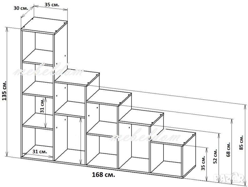 размери: 168 / 30 / височина 135см.(виж схемата)