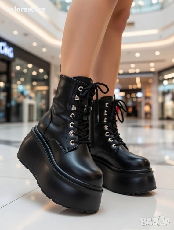 Боти на платформа - черна кожа - 56WL16