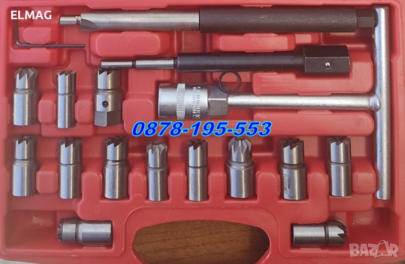 - Комплектът се състои отрежещи инструменти подходящи за почистване и ремонт на повърхността нa уплътненията и цилиндричната глава. Например, при смяна на инжектори или дюза,
