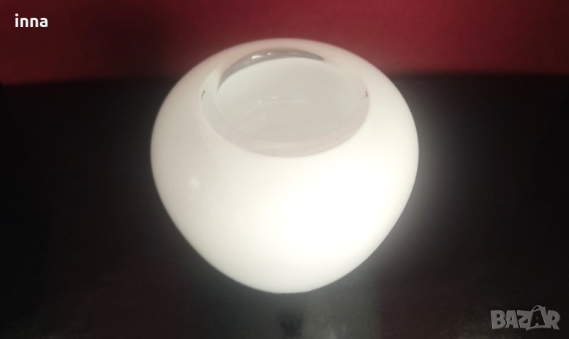Много ефектна и функционална, произведена в Норвегия стъклена красота. Може да служи и като свещник, и като елегантна ваза. Изработена от масивно стъкло със снежнобял опалов цвят. Прецизна майсторска работа!