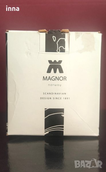 Марка MAGNOR- Norway. Scandinavian design since 1891.Нова, в оригинална кутия. Съвсем лека забележка по кутията от махане на опаковъчната лепенка на капака – вижда се на една от снимките. По стъкленото изделие – абсолютно никакви забележки. Не е и ползвано.