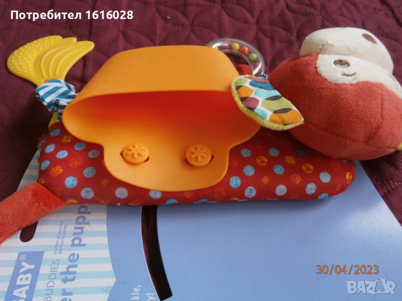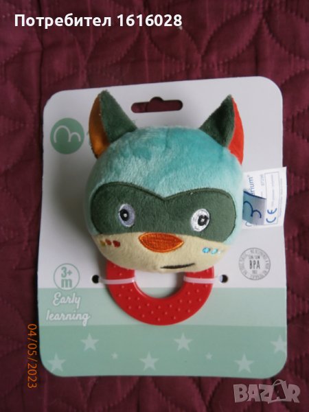 3.Играчката коте е 2 в 1.Дрънкалка в плюшеното коте с гумена дъвкалка за зъбки. Цена 7 лв.