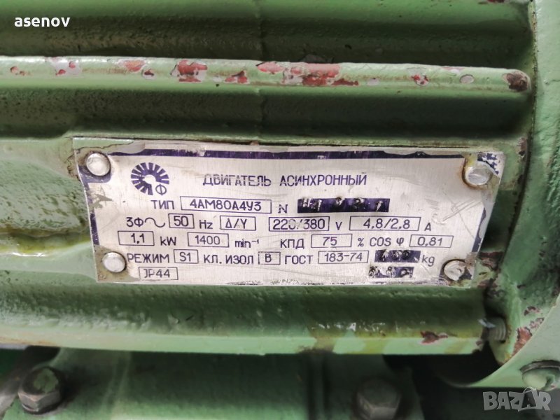 Продавам помпа за гъсти течности с мощност 1,1 киловата, 1400 оборота в минута, налягане 2,5 МРа, дебит 11 литра