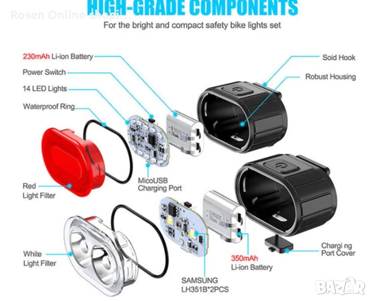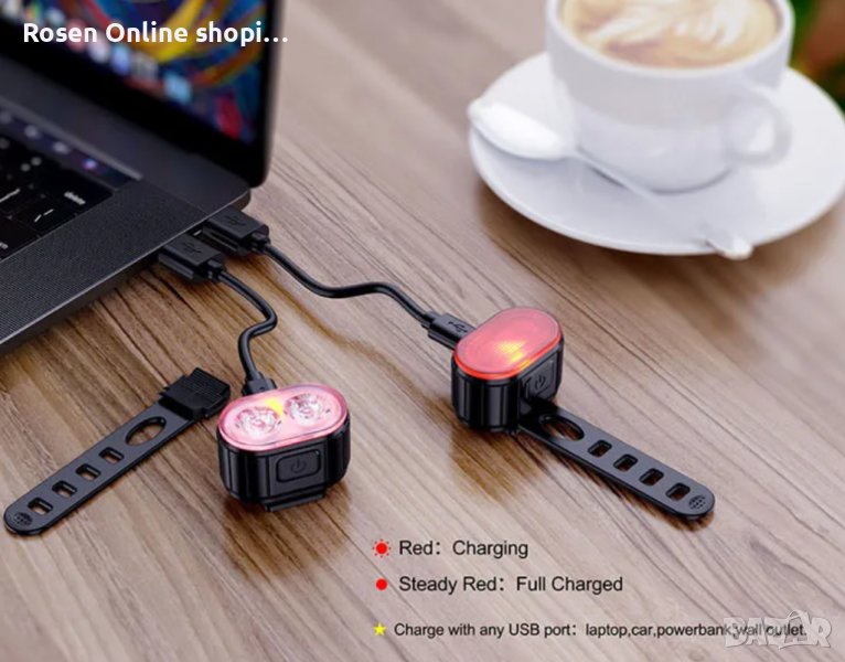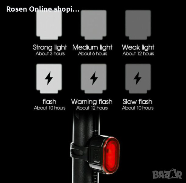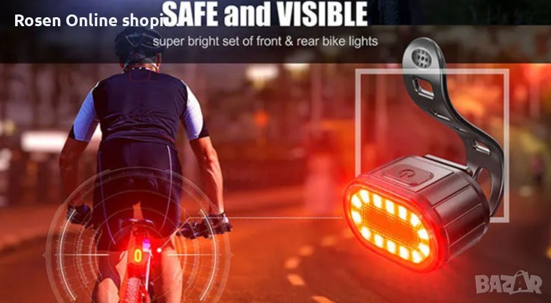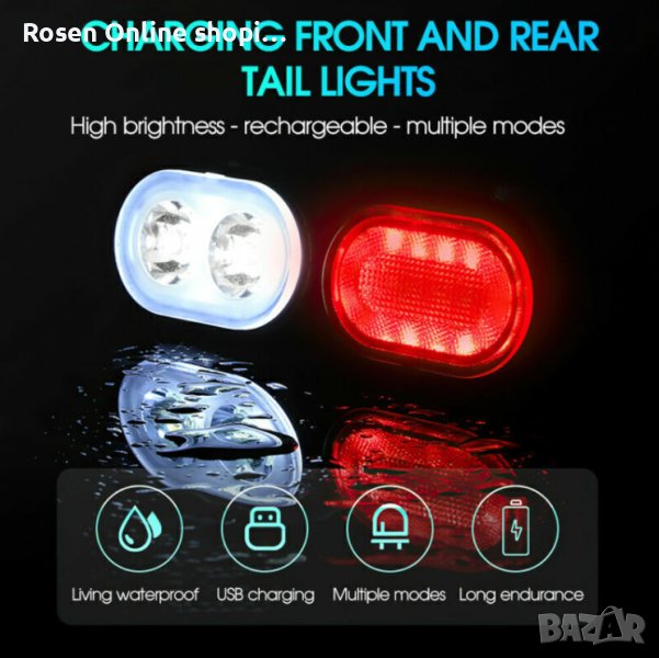 Фар с четири режима и стоп с шест режима със запаметяване на избраният режим, водоустойчиви с акумулаторна зареждаща се батерия!
