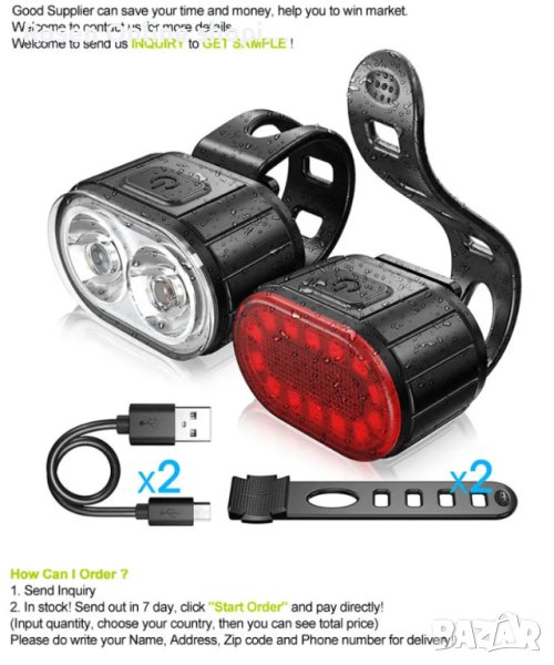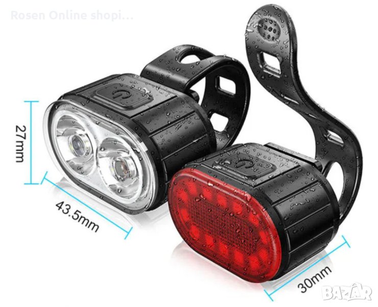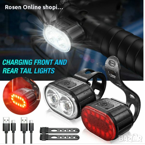 LED Комплект фар и заден стоп за велосипед и тротинетка, водоустойчиви с акумулаторна батерия