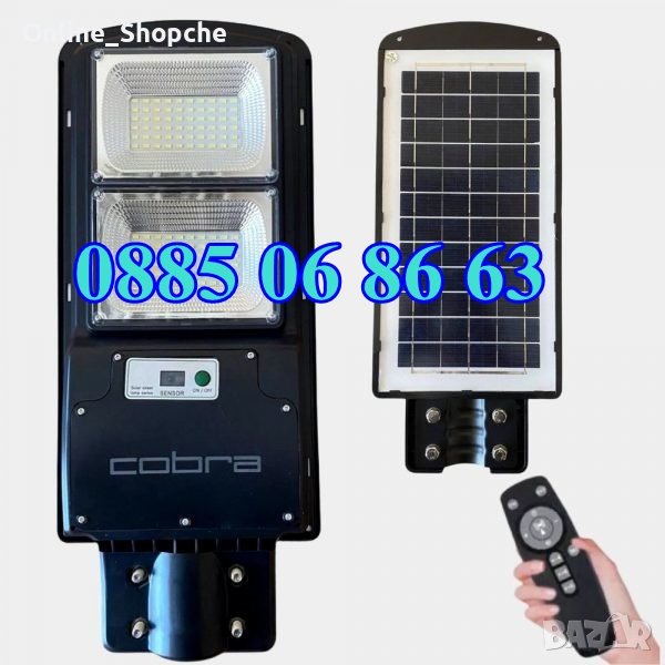 Соларна улична лампа COBRA PRO от ново поколение! Системата е изцяло автономна, през светлата част на деня се зарежда батерията, а веднага след като се стъмни осветлението се включва автоматично, благодарение на сензорите за светлина, които са в соларния панел.