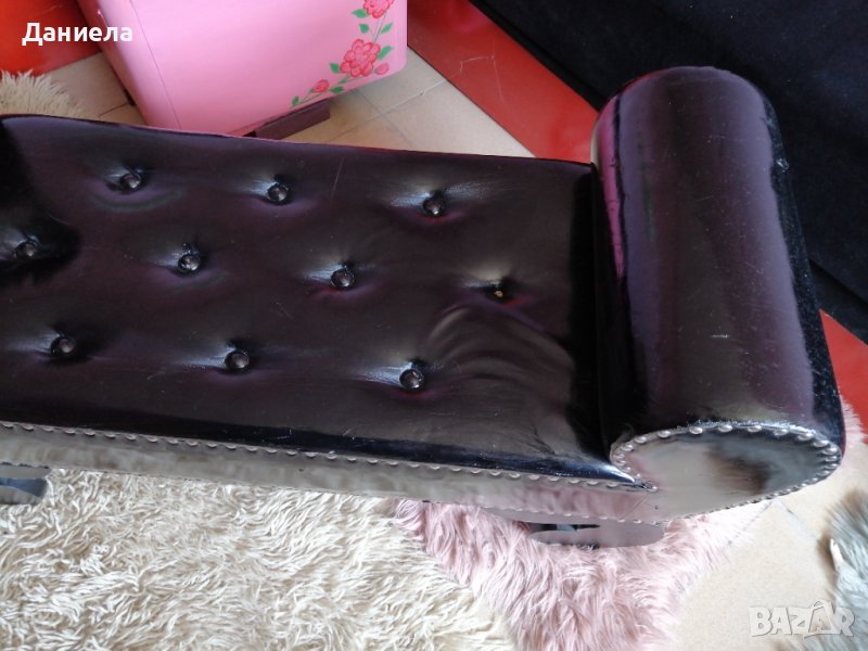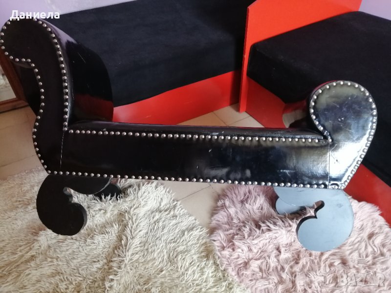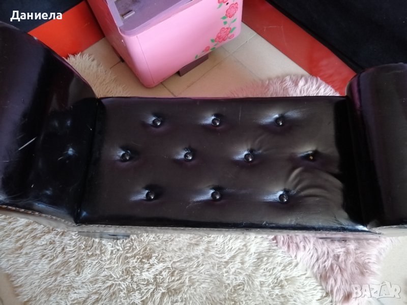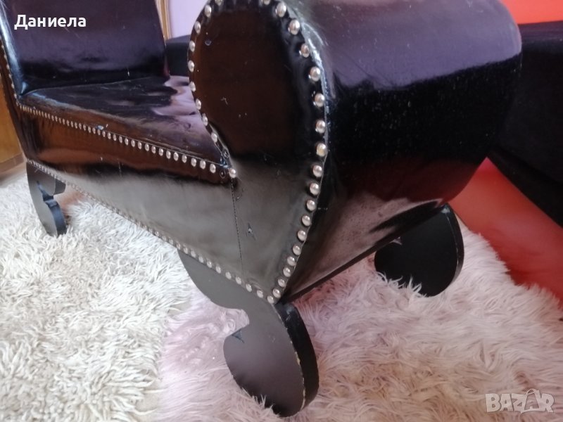 Детско канапе, удобно и практично, изработено от дърво и изкуствена черна кожа. Нестандартно, стилно, подходящо за детска стая или за фотосесия.