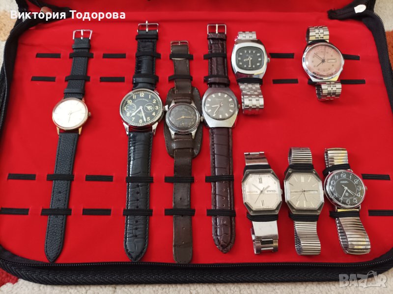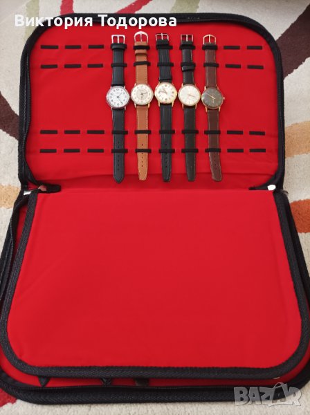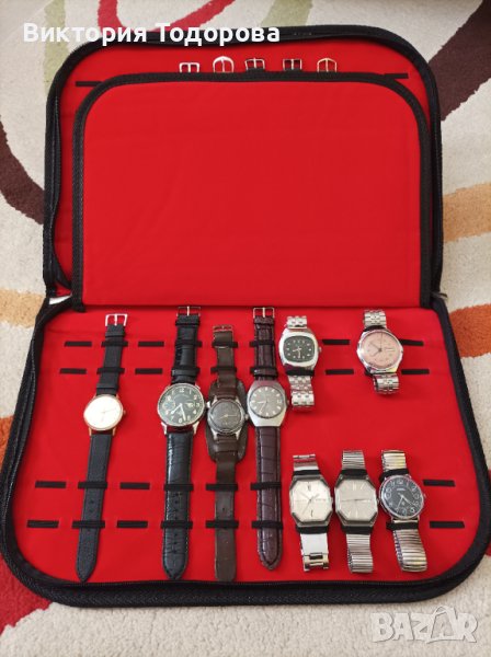 Здравейте! Предлагам практичен органайзер за съхранение на вашата колекция от часовници. Може да побере до 40 часовника в зависимост от вида на верижка, каишка и тяхното подреждане. На снимката е показан примерен начин за подреждане. Часовниците са само за онагледяване. Калъфът е нов и се продава без часовници. Практичен за разнасяне и показване на колекцията ви. Заема малко място при съхранение. Имам подвижна преграда за предпазване от надраскване на часовниците при затваряне. Двоен цип отварящ се към двата края.