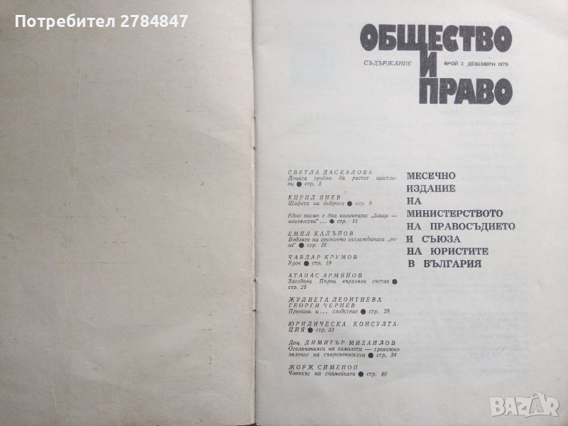 Общество и право брой 3 декември 1979 → Обява 40619707