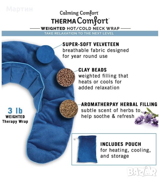 Билковата „яка” за врата е чудесен начин за облекчаване на стрес, напрежение в мускулите и главоболие. За разлика от електрическите възглавници, яката за врат приляга плътно по тялото и премахва напрежението в мускулите на врата и раменете.