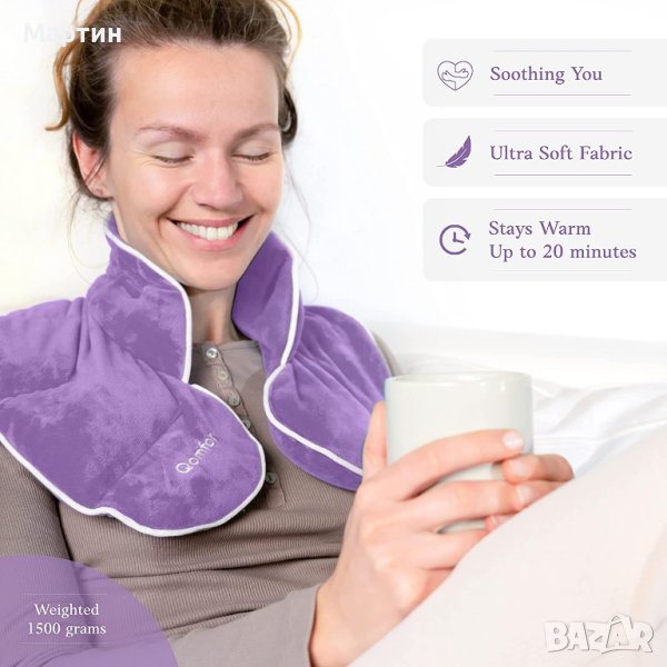 Мека и релаксираща: топлинната възглавница за рамото и врата е идеална за облекчаване на болки във врата и раменете, болки в гърба, менструални болки, артрит, болки в краката, болки в ставите и много други наранявания и болки. Успокояващата топлина за облекчаване на натиска и премахване на хроничната болка във врата и пасва идеално на раменете ви, един размер за всички.