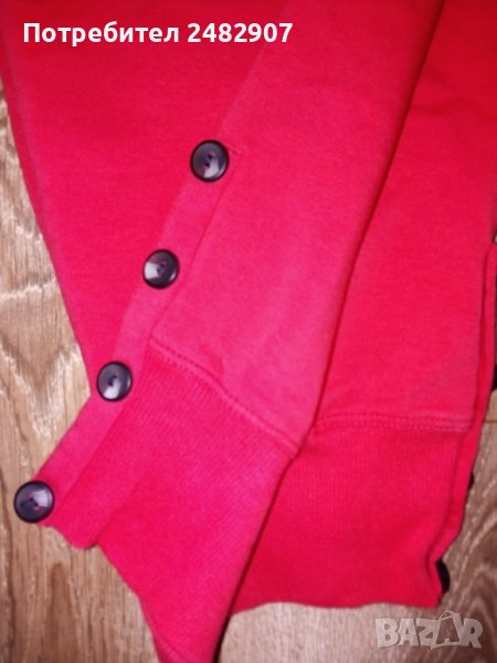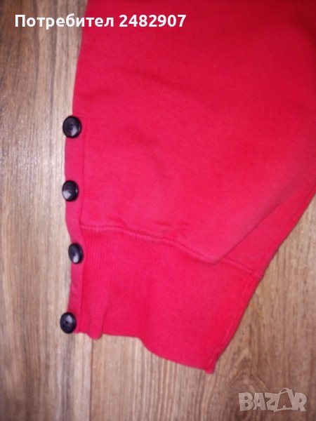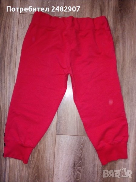 Нови дамски спортни бермуди, цвят "Корал" с връзки и два джоба отпред. Ширина в талията - 34 см, дължина от талията до чатала - 24 см, дължина от талията до долу - 64 см. Съдържат 70 % памук, 20 % полиестер и 10 % еластан, размер S, с широк ластик на талията и с по четири копчета в долната странична част на крачолите.