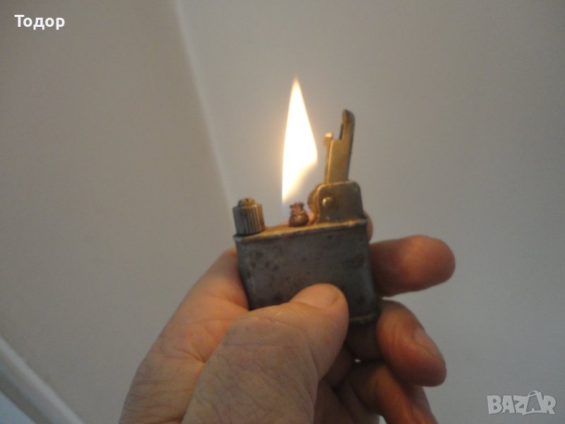 Страхотна стара изработка Налични маркировки Всичко по нея е оригинално дори и камъчето Отвих отдолу капачето и сложих бензин За мое учудване заработи перфектно Пали от раз Рядка колекционерска находка в отлично състояние За топ колекция но може да се ползва и по предназначение