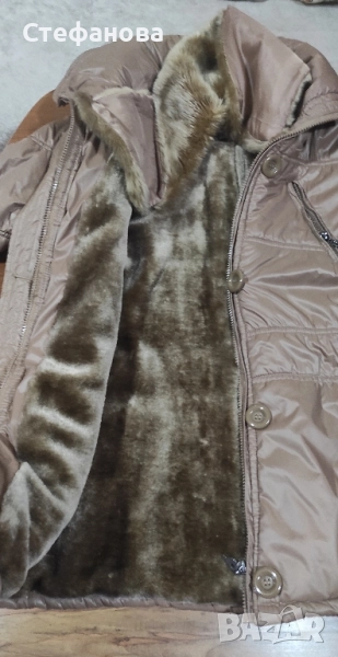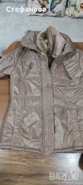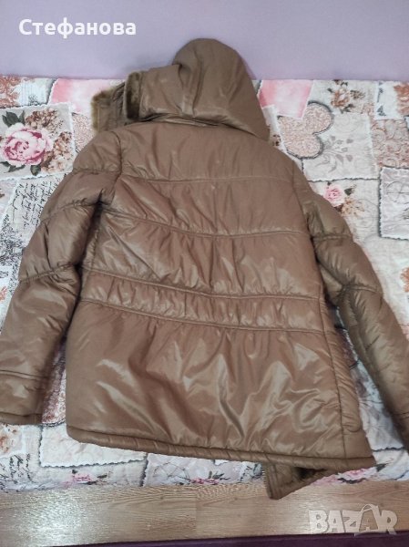 Якето е в отлично състояние. Светло кафяво. С качулка, вата
