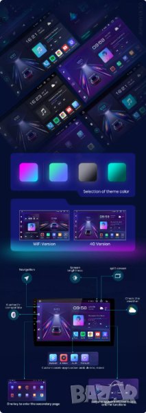 Wi-Fi интернет, новият Андроид, Bluetooth за разговори и музика, USB входове за флашка и зареждане на устройства, GPS навигация, теми за вид на меню, еквалайзер за настройка на звука, бърза реална RAM памет от ново поколение. ТОП дизайн!