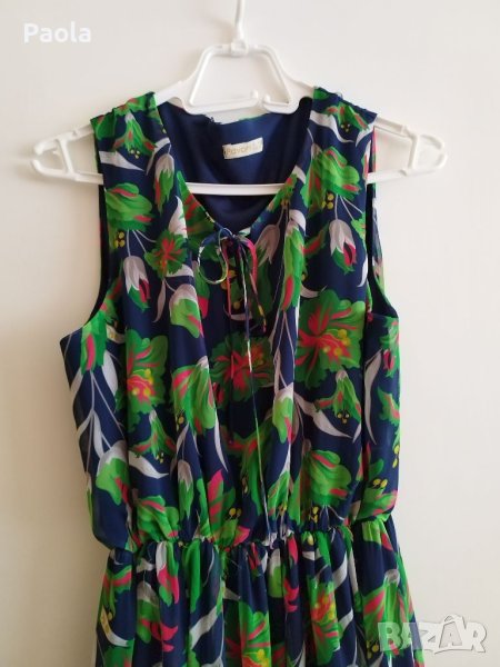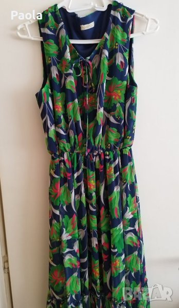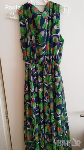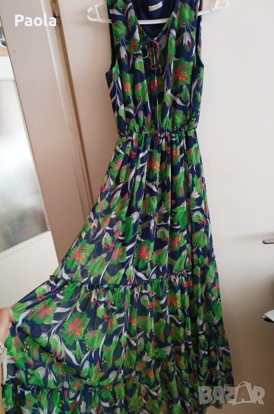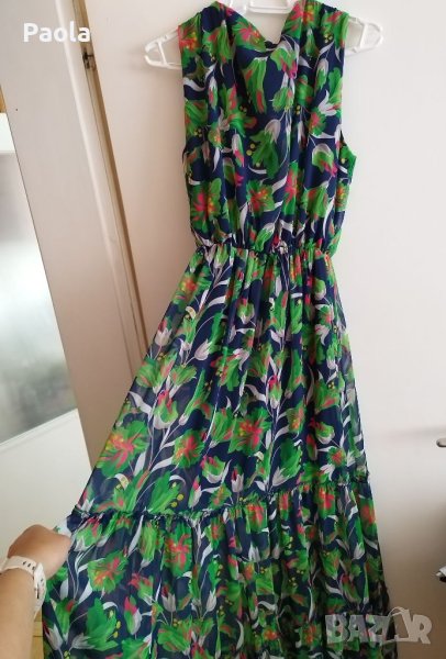 Страхотна цветна и ефирна дълга рокля, много подходяща за повод. Слагана веднъж, затова е като нова. В долната част много красиво и обемно се разширява.