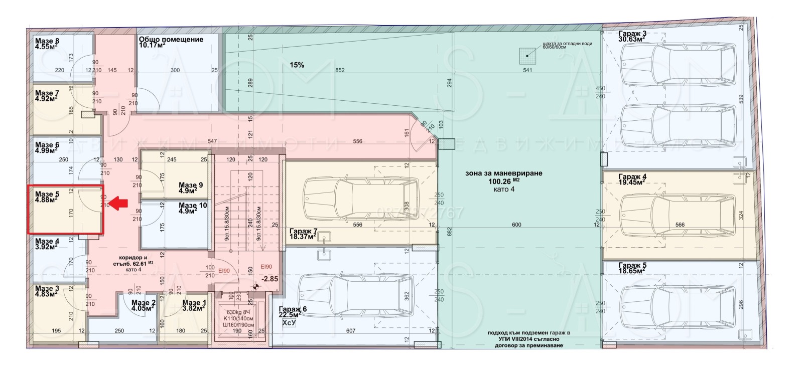 Към апартамента има мазе 5 - 4,88кв.м..