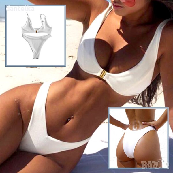 V67, Промоция, Снежно бял бански от две части със средна талия, Секси бански, Дамски бански