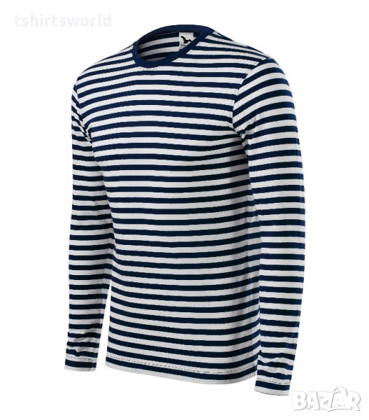 Нова мъжка моряшка блуза с дълъг ръкав, тъмносиньo/бяло райе