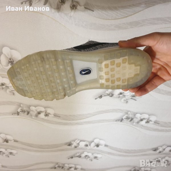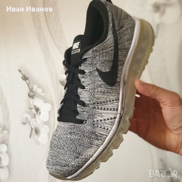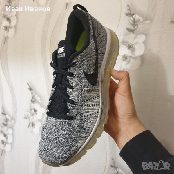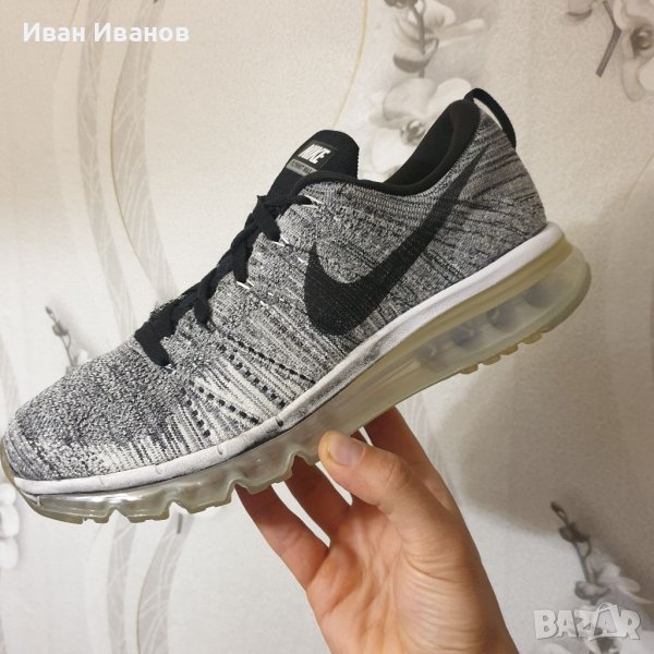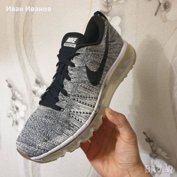 Този изключително удобен модел, благодарение на въздушния мехур по цялата дължина, има Flyknit мрежеста конструкция, съчетаваща черно, сиво и бяло. Технологията Flyknit позволява на чифта да пасне перфектно на крака, като втора кожа.