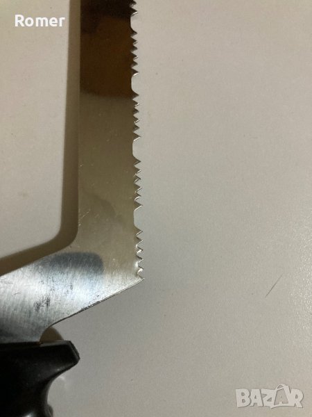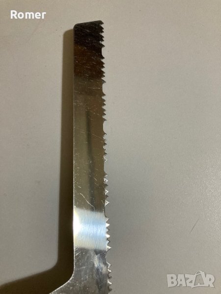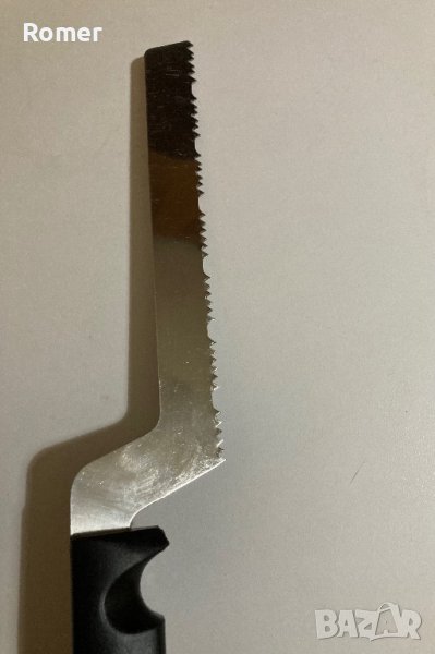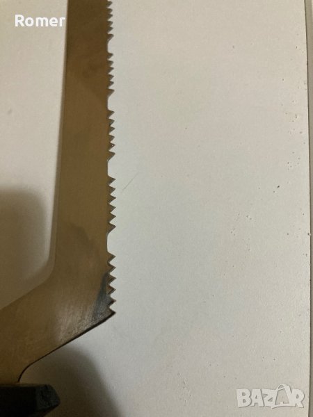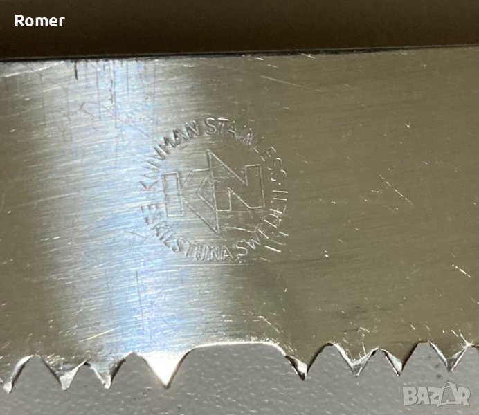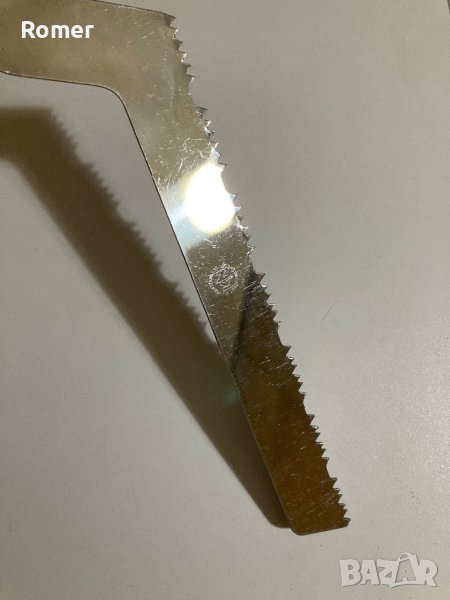 Шведски нож с назъбенo острие. Ножа е с интересен профил на зъбите, които са разминати странично( имат чапраз) Обща дължина 32см.