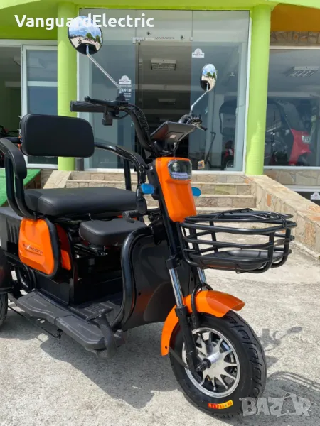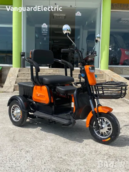 Уникална триместна триколка MaxMotors X1 – без аналог на пазара – модел. Триколката е с дигитално табло, три нива на скоростта, стопове, мигачи и габарити,LED фар. Предна и задна ръчни спирачки. Крачна спирачка. Голям кош за багаж. Триколката е с вградена втора седалка за допълнителен пасажер, като самата седалка се движи във височина, което създава удобство за нисък или висок човек + подарък трета малка седалка.