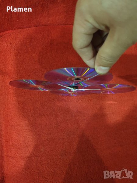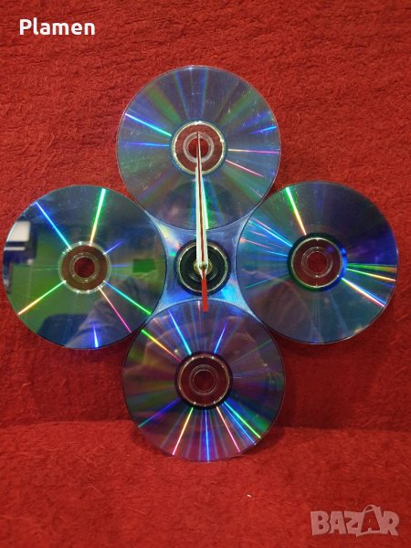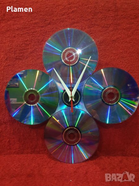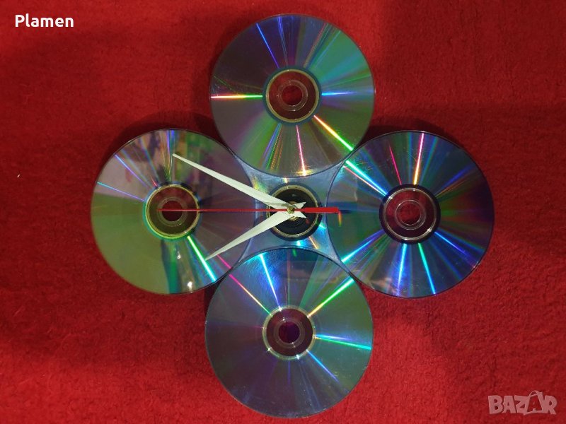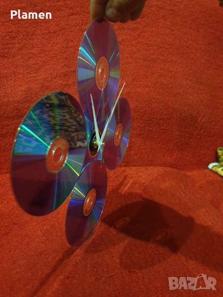 Стенен часовник ръчна изработка направен от 5 бр.компакт дискове с плавен бешумен механизам!