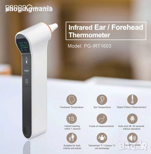 Нашият инфрачервен термометър PG-IRT1603 е пълен с атрактивни функции, които ще ви помогнат да запазите вашата клиника или работна среда безопасни за клиенти и служители. Може да се използва за измерване на температурата на челото или ухото. Освен това можете да го използвате за измерване на температурата през други части на тялото.