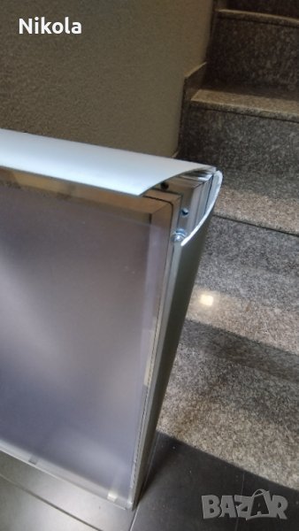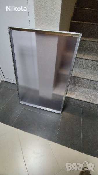 Снап рамка с дебелина на профила 25 мм и прави ъглис размер 71,5см /101,5 - 2бр и 64см/89,5см. - 4бр. Клип система за бързо и лесно поставяне на рекламната материали. Рамките са използвани но в отлично състояние