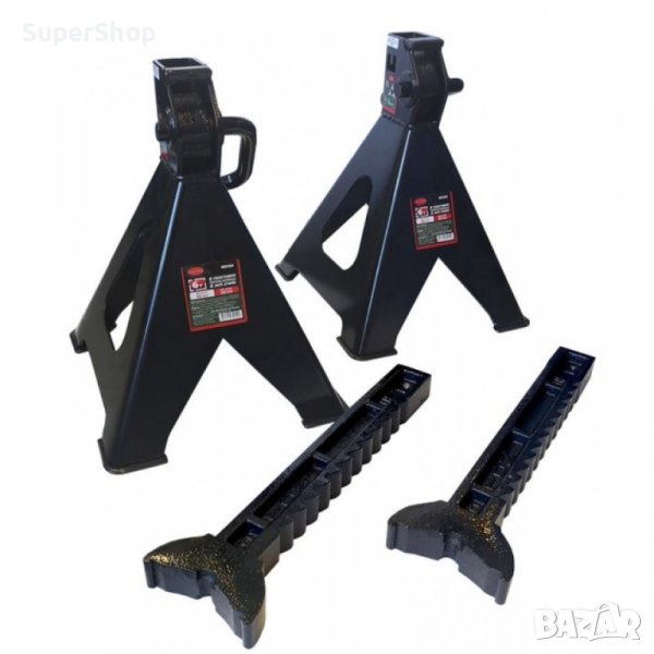 Стойките осигуряват сигурна и стабилна опора на автомобила върху специално профилирани седла. Заключващият лост ефективно закрепва опорните колони в избраната позиция. Изработени са от здрава стомана и се характеризират със здрава, заварена конструкция. Краката на криковете са със заварени широки крака, стабилизиращи опорите при работа под товар.