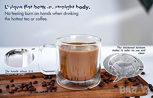 Комплект от 2 броя стъклени чаши за кафе еспресо, лате, капучино, чай или горещ шоколад.