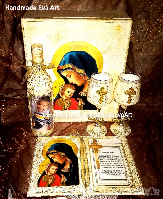 Подарък за Кръстници- ръчно изработени по поръчка - с икона/ снимка + поздрав по избор: