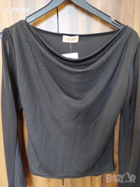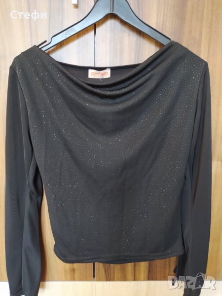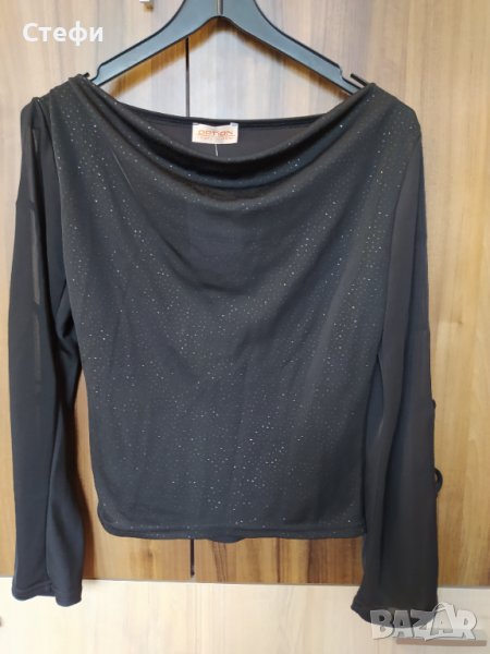 Черна лъскава блуза с красиви голи ръкави. НОВА