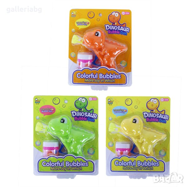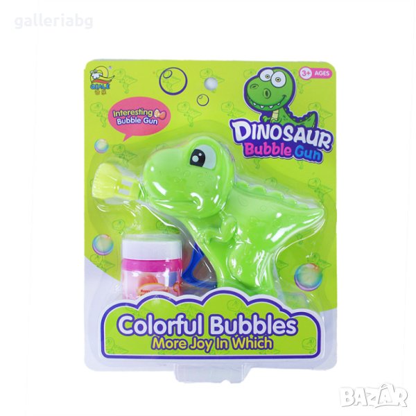 Насладете се на страхотно забавление с този зашеметяващ пистолет за балончета! Комплектът включва духалка за балончета и пистолет във формата на динозавър.