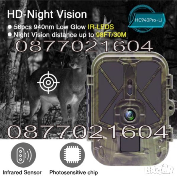 Камера за лов HC-940Pro- oсвен основните функции, като невидима подсветка, времето за задействане на камерата е 0,3 сек по спецификация и новият модел е с увеличен обхват на действие - до 20 метра. Това я прави перфектната охранителна система, без значение дали ще я ползвате като такава за частна собственост или като камера за лов, инсталирана в гората. Необходимата информация се изпраща в момента на заснемането. Това предоставя бърз и лесен достъп до това кой или какво посещава охраняемия район.