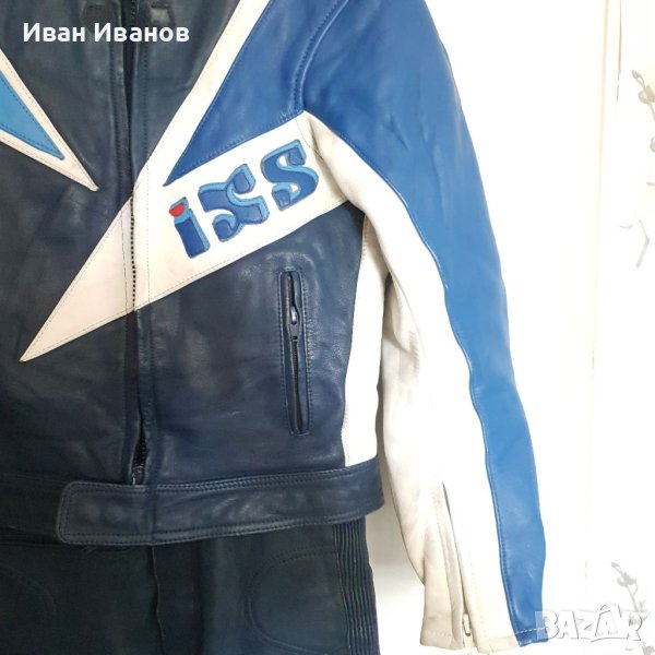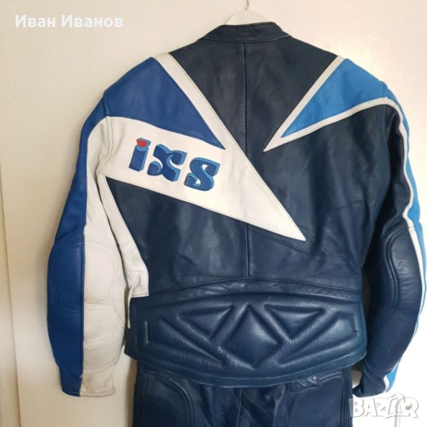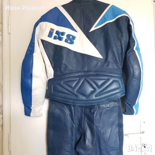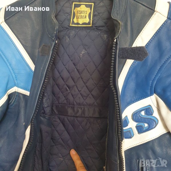 Естествена телешка кожа , много здрава и дебела и качествена кожа . Използван, с минимални следи . Номер на якето 50 на панталона 40 . Без протектори.. За повече информация питайте