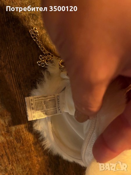 Много елегантна бяла чанта на известната фирма за аксесоари. С лого . Има опция за носене на ръка, както и за рамо. Два златни синджира към нея. Пере се в пералня. По инструкции. Без забележки.