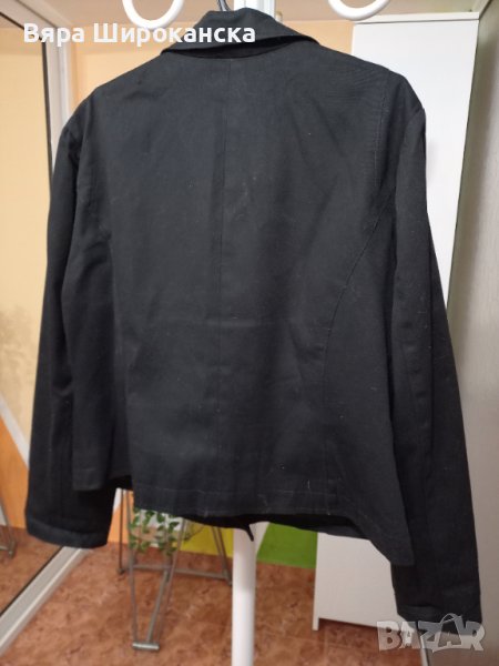 Късо памучно яке. Наситено черен цвят. Капси. Размер L, XL.