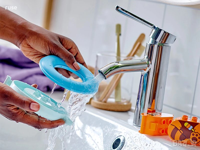 Пръстенът се отваря за лесно изплакване, за да можете лесно да поддържате играчката хигиенично чиста баня след баня.