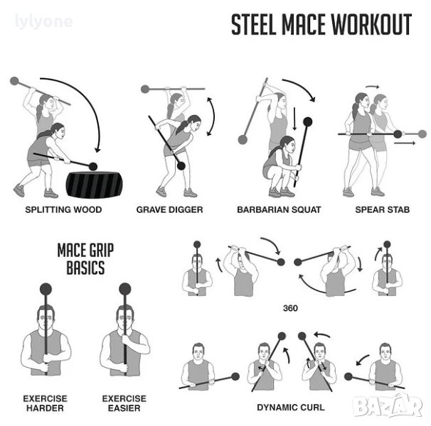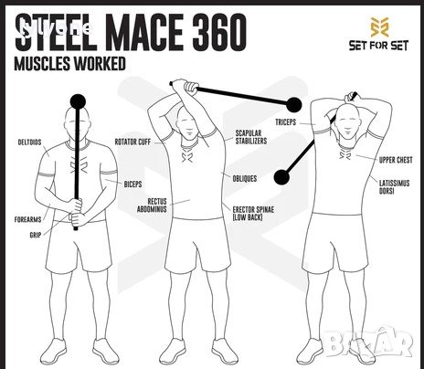 Стоманеният боздуган осигурява динамични, високо интензивни тренировки за цялото тяло, които изграждат сила на въртене, сила на сърцевината, сърдечно-съдово здраве и др.