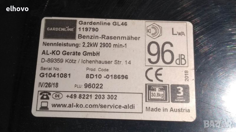 2,2кв, 2900 оборота, широчина на косене 46 см, 7 степени на височина на косене