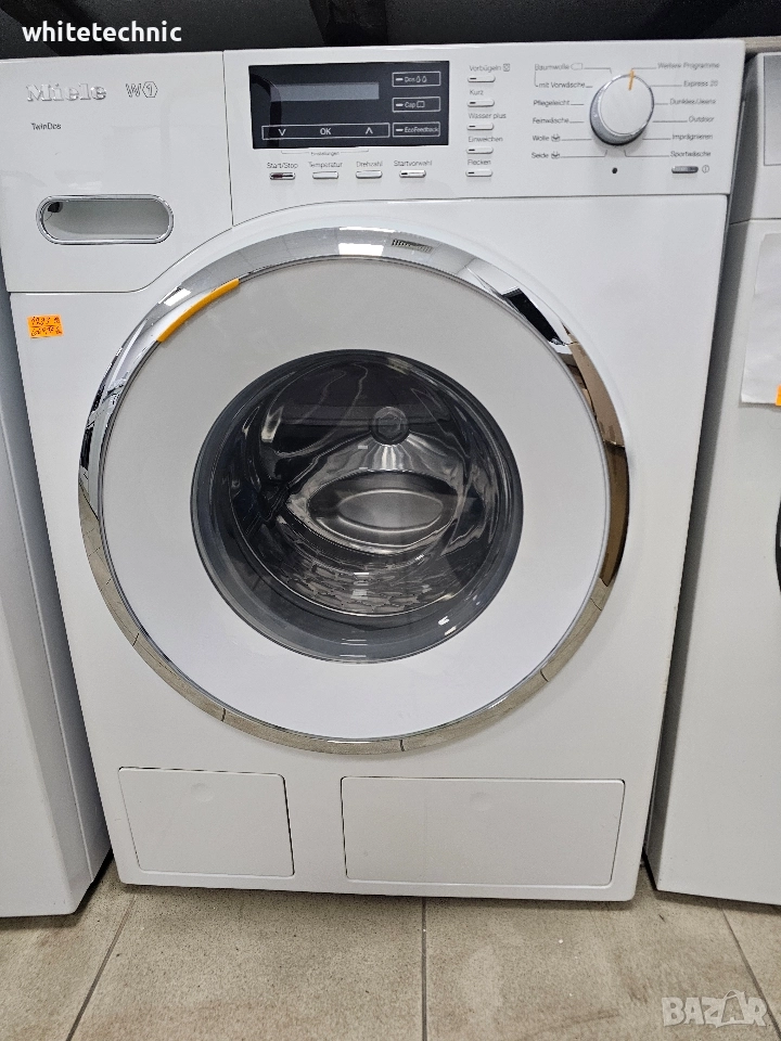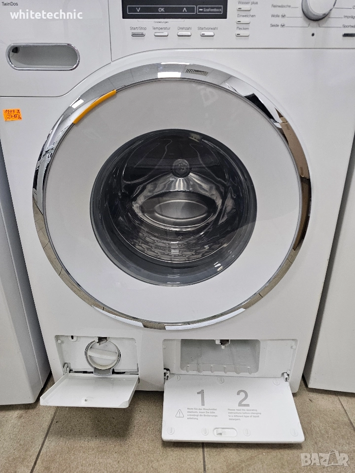 Miele. Този модел разполага със системата CapDos на Miele, използвайки капсули за перилни препарати, които просто поставяте в отделението за балсам за тъкани. Тази умна система ви позволява внимателно да се грижите за специализирано облекло, тъй като раздава точно нужното количество препарат за определен тип плат и в най-подходящия момент.TwinDos: Кажете сбогом на употребата на течни перилни препарати! Революционната UltraPhase от Miele автоматично разпределя вашия почистващ препарат и балсам за това, което изчислява, че е подходящото време за всяко зареждане, приспособявайки измиването за постигане на най-добри резултати всеки път. Това не само ви спестява пари, но и ви спестява време, демонстрирайки, че системата Miele TwinDos наистина ви осигурява максимално удобство.Тази умна опция за премахване на петна с голям капацитет се справя с твърдите замърсявания и петна, докато опцията за меден барабан и опция за предварително гладене SoftSteam равномерно разпределя пара, за да намали набръчкването и да улесни гладенето. Удобният му денонощен закъснителен старт ви поставя под контрол, за да впишете прането в графика си и дори има дисплей, който да ви каже колко дълго е останал цикълът, така че няма да е необходимо да продължавате да проверявате.С енергийна оценка A +++, тази машина не е просто мила с дрехите ви - по-добра е към околната среда и към портфейла ви. Екранът за екологична обратна информация детайлира консумацията на енергия, така че винаги да знаете точно колко сте използвали. Нещо повече, този елегантен бял уред е тестван до 20 години.Добавяне на функция за пранеПросто натиснете бутона за старт спиране и превъртете надолу веднъж до Добавяне на пране - програмата ще спре и вратата ще се отключи. Моля, обърнете внимание * Ако това съобщение не се появи на дисплея, тогава вече не е възможно да добавяте или премахвате пране, тъй като температурата е достигнала 55 градуса, нивото на водата е твърде високо или машината е достигнала въртящата се част на програмата. За допълнителна безопасност бравата на вратата няма да се отвори, ако температурата в барабана е над 55 градуса.Основни функцииTwinDos - Автоматично дозиране на течен препарат. Добавяне на функция за пране: Позволява ви да добавяте забравени предмети към прането сиCapDosing - Капсули за еднократна употреба за специални тъкани като вълна, коприна, спортно облекло и повторна защита, които изискват специални грижи за почистващи препарати.EcoFeedback - Това осигурява прогноза за потреблението при избора на програма и пълно обобщение в края на цикъла. Позволява на потребителите да бъдат по-икономични и екологични. Оценка за енергийна ефективност +++, която да ви помогне да намалите сметките си и да помогнете на околната среда.ProfiEco Motor - Силен и икономичен: С двигателя ProfiEco от Miele дрехите се перат или сушат бързо, екологично и икономично. Премахването на петна предлага ефективно отстраняване на петна с интуитивна работа. Има 6 вида петна за избор.Система за течен препарат с натискане на един бутон - TwinDos/ Автоматична дозираща система за течен препарат лесна за употреба спестява 30% от препарата, Miele 2-фазна системаГладенето вече е лесно благодарение на предварителното гладенеПерфектното допълнение за специфични приложения - CapDosingЕнергиен клас A +++Капацитет до 8 кг пранеУникален барабан от висококачествена стомана с форма н