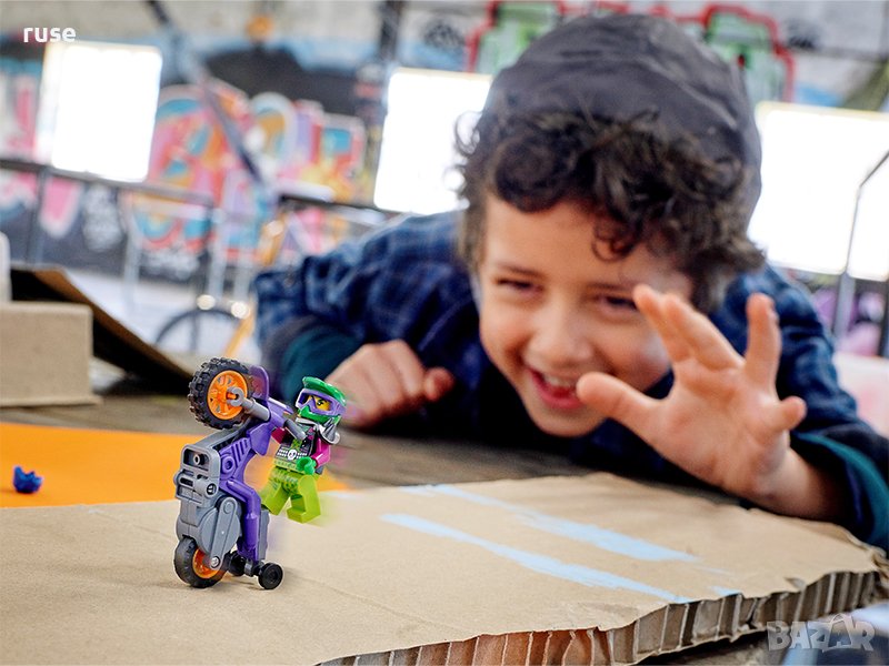 Комплектите за игра LEGO City Stuntz поставят децата в центъра на действието с мотори, задвижвани с маховик, готини превозни средства, реалистични структури и забавни герои, които вдъхновяват ролева игра с въображение, базирана на събития от реалния живот.