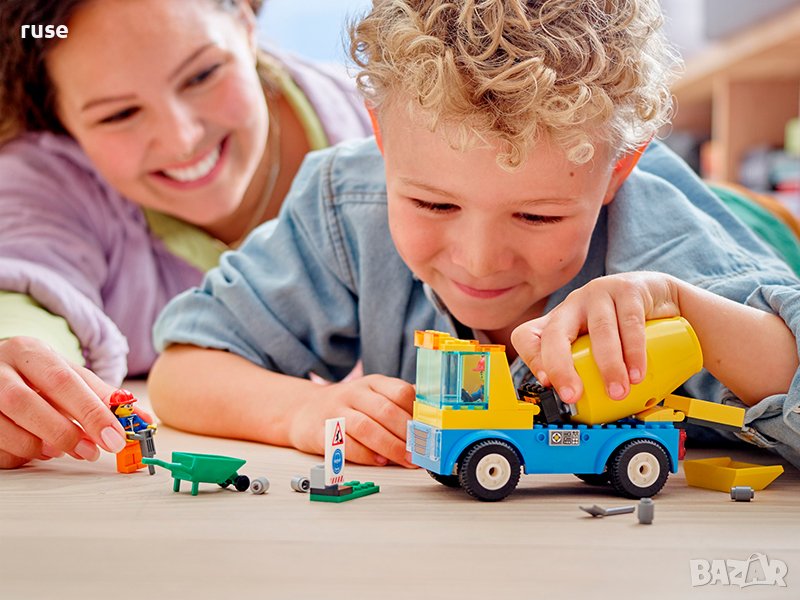 Присъединете се към строителните работници на LEGO® City на страхотната бетонобъркачка. Карайте до строителната площадка и използвайте пневматичния чук и ръчната количка, за да изчистите старата основа. След това разгънете улея в задната част на камиона и завъртете смесителния барабан, за да излеете бетона. Когато приключите, качете инструментите си и се отправете към следващата задача!