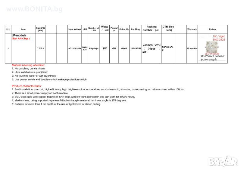 Всеки модул е с 4 LED диода по 1 ват (4 х 1 W)