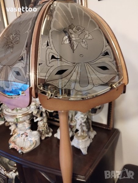 Два лампиона от соца . Единият е с дървена стругована стойка и абажур от рисувано стъкло, а другият с мраморна стойка и текстилен абажур.Цената е за всеки по отделно.Разгледайте и другите ми обяви, има много красиви неща! Мраморният-ПРОДАДЕН!