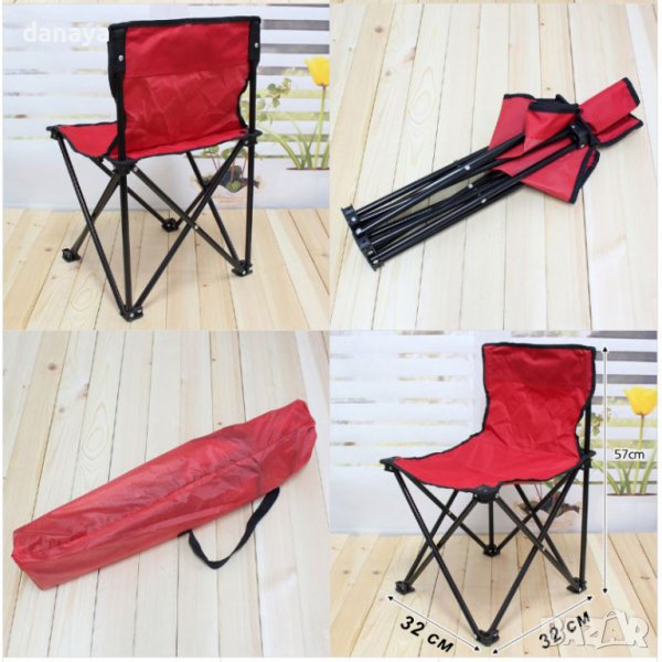 Преносим сгъваем стол с облегалка в компактни размери. Малко сгъваемо рибарско столче за къмпинг, пикник, риболов, походи или други открити и закрити места. Столчето е леко и с компактни размери, лесно за пренасяне. Изработено от метал и здрава промазка. Здраво и практично, широко приложение. Предлага се в калъф за съхранение.